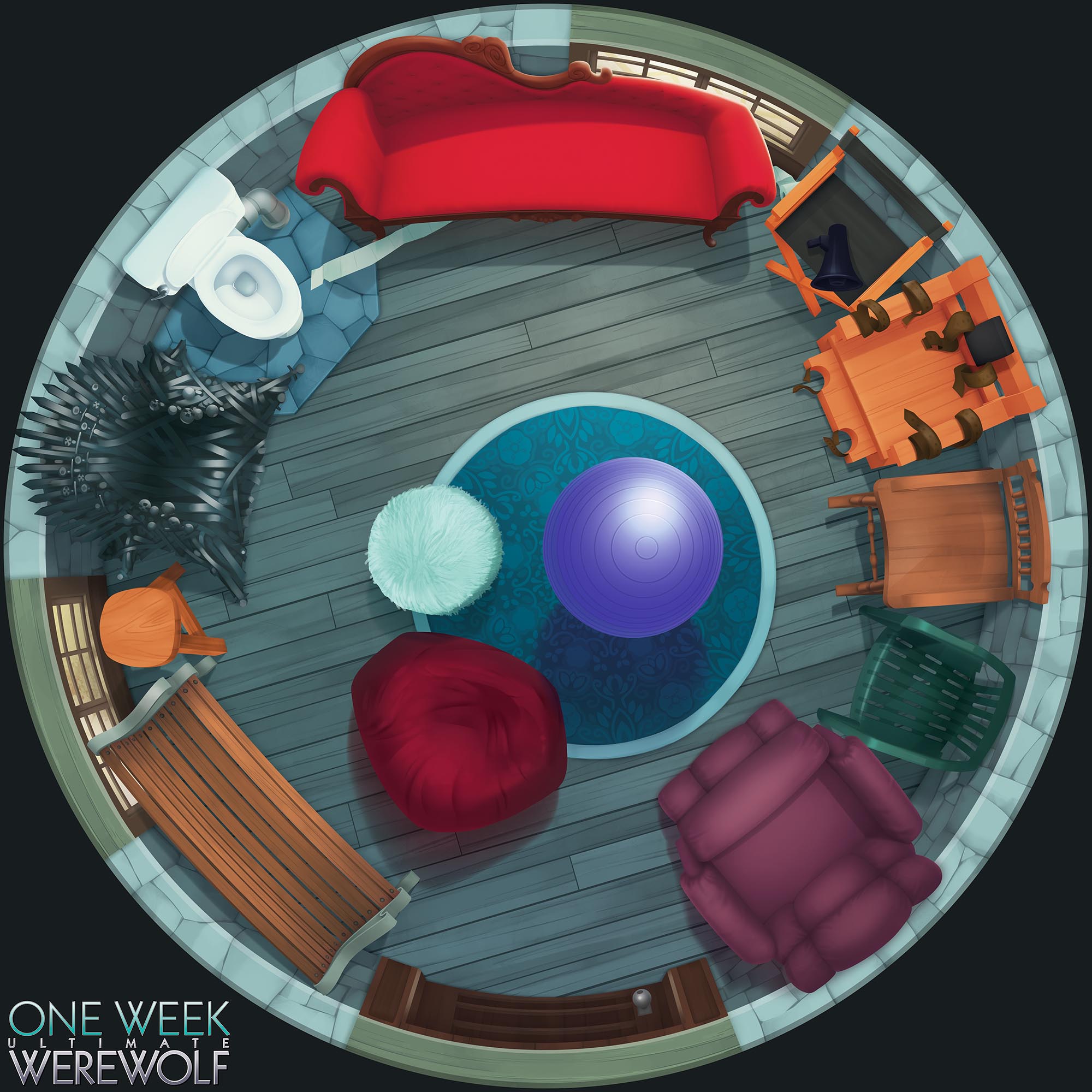 I painted location tiles and cover art for the board game One Week Ultimate Werewolf by Bézier Games