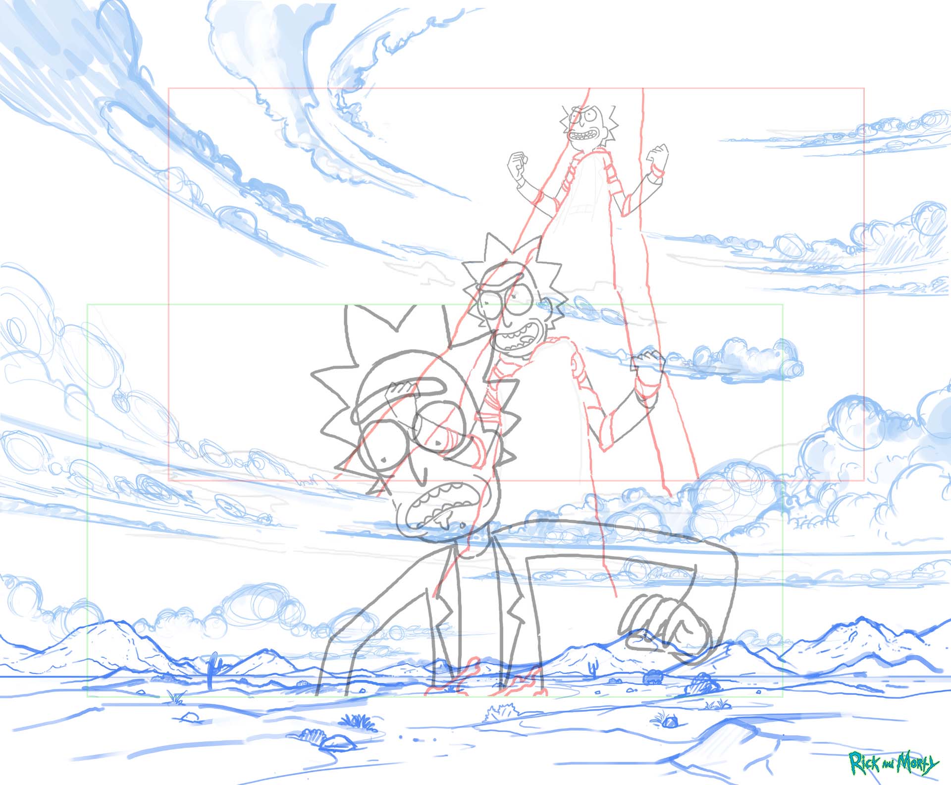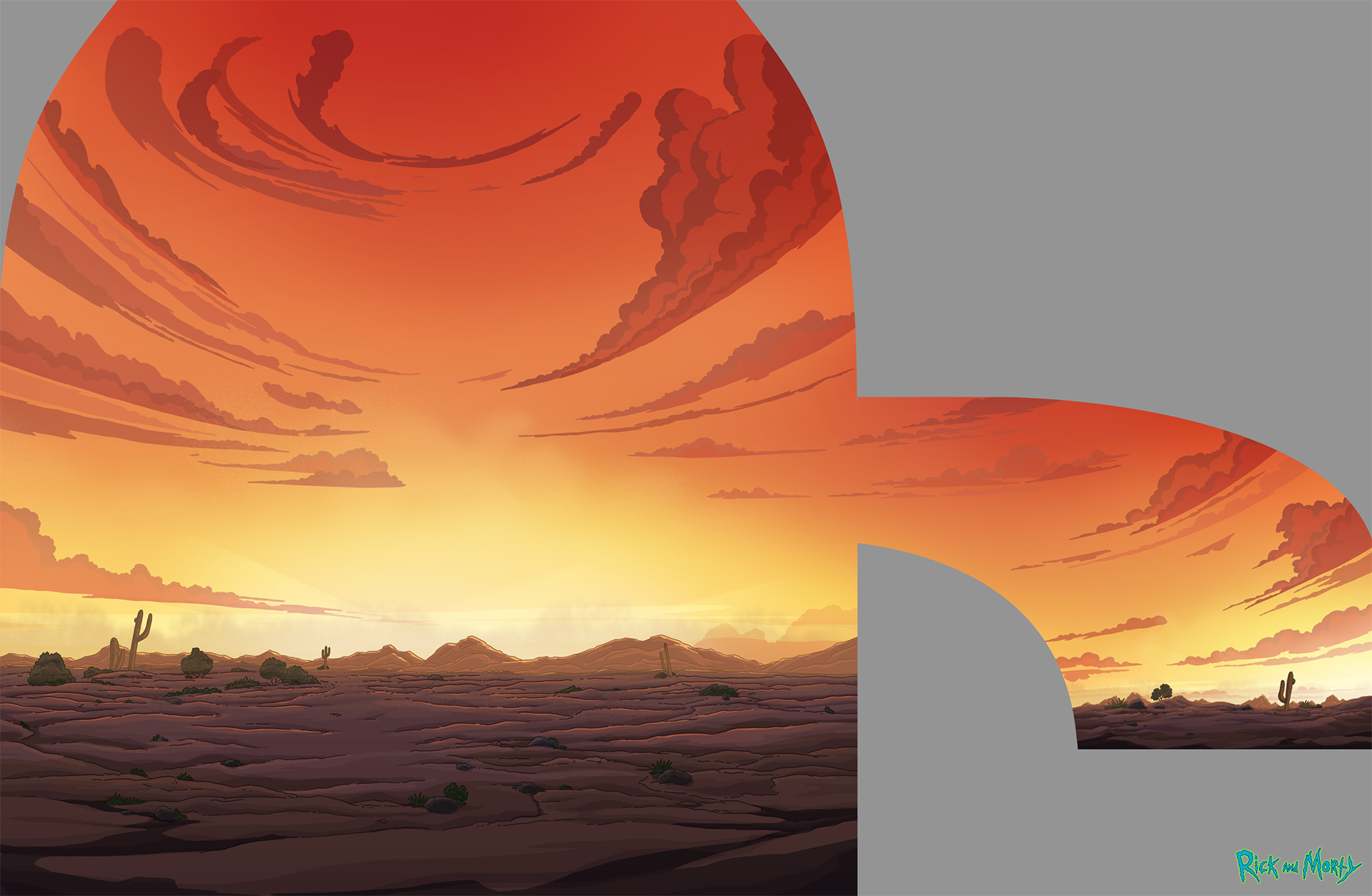 Background art and layout for Studio Yotta for the ferrofluid sequence in Rick and Morty S4E1.