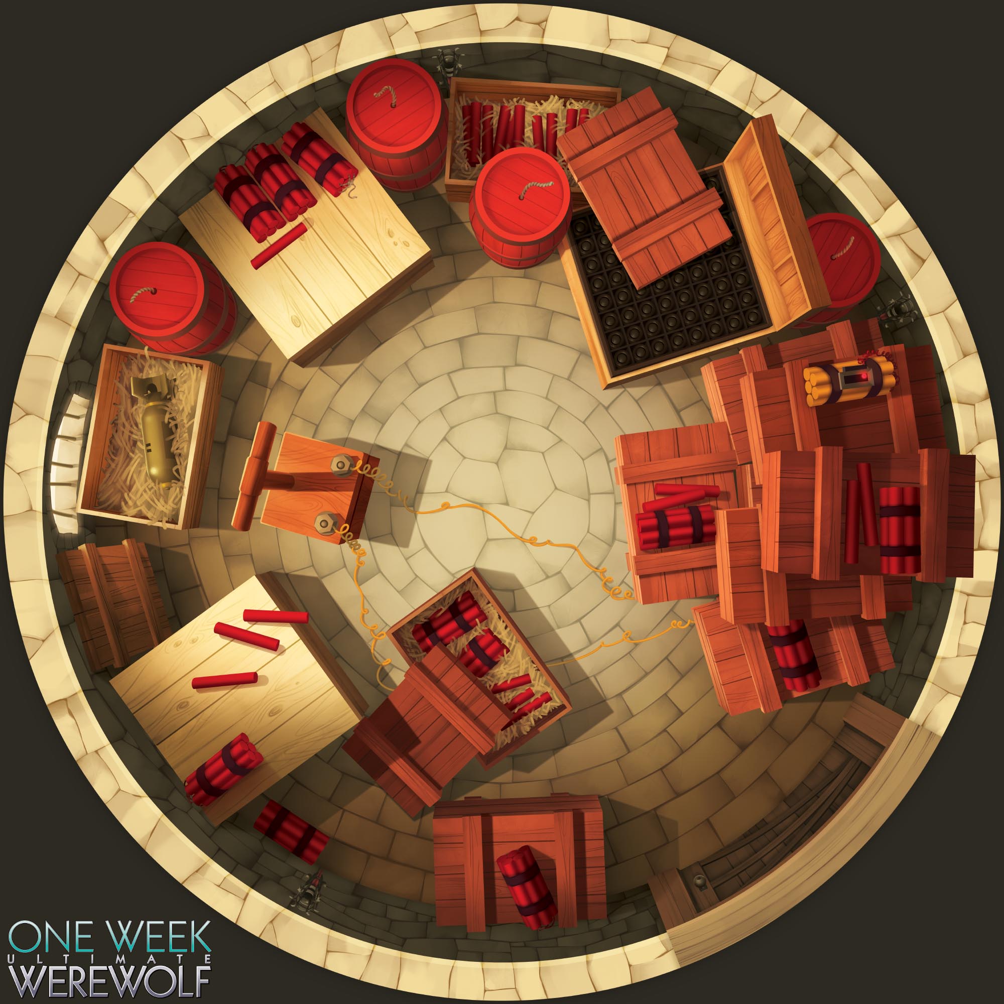 I painted location tiles and cover art for the board game One Week Ultimate Werewolf by Bézier Games
